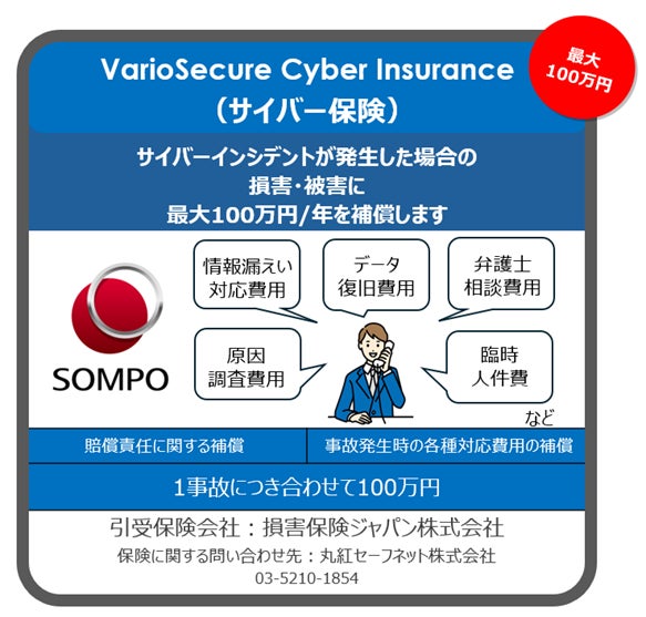 バリオセキュア株式会社(代表取締役社長:山森郷司 以下バリオセキュア)は、損害保険ジャパン株式会社(代表取締役社長:石川耕治、以下損保ジャパン)の「サイバー保険」を自動付帯した「VarioSecure Cyber Insurance」の提供を3月1日に開始しました。