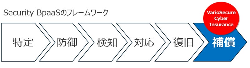 この保険は、損保ジャパンが中堅・中小企業のお客様のニーズに合わせてバリオセキュアのために開発した保険で、Security BPaaS(BPO as a service)として、セキュリティ対策の従来からのフレームワークにさらに補償プロセスを付加し、ワンストップの新たな価値を提供することが可能となりました。