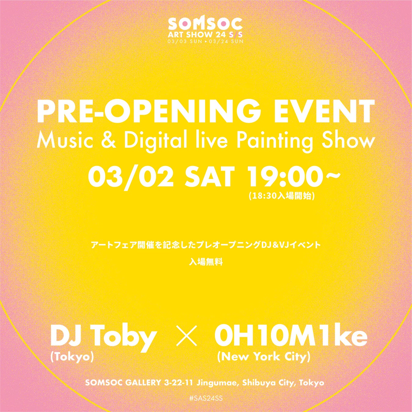 3月2日(土)にはアートフェア開催を記念し、どなたでも参加可能なプレオープニングDJ&VJイベントを開催します。また、会期中には、『ニューヨーク・ブルックリン アーティスト 0H10M1ke 似顔絵イベント』や『アーティスト 仁木智之&コンテンポラリーダンサー 藤平真梨によるダンスパフォーマンス』など、SOMSOC GALLERYならではのアートイベントを実施します。