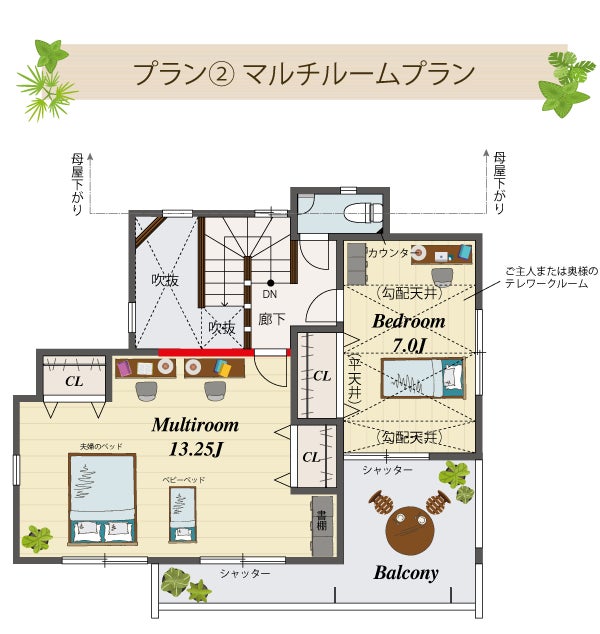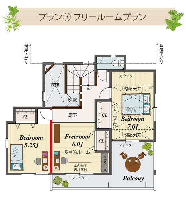 LDKとは別空間にすることで自由なコーディネートをお楽しみ頂けます。広々と開放的な大空間で小さいお子様と過ごすプレイルーム、LDKと雰囲気を変えたセカンドリビング、机を置いてスタディルームなど利用方法は様々。ライフスタイルに合わせたインテリアで暮らしに彩りを与えます。