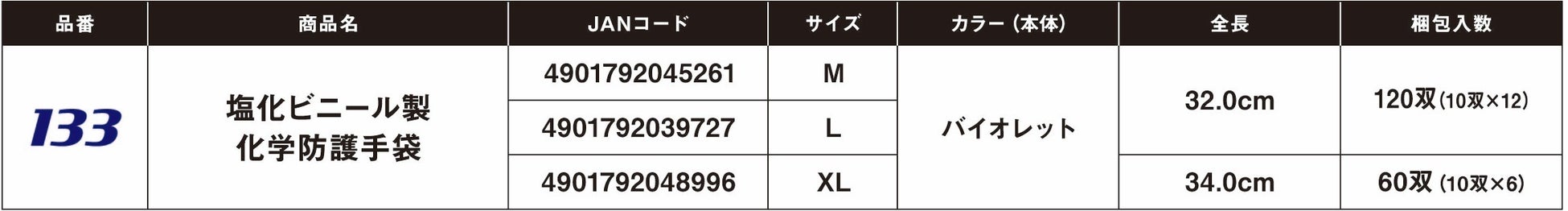 「No.133 塩化ビニール製化学防護手袋」を2024年7月に新発売