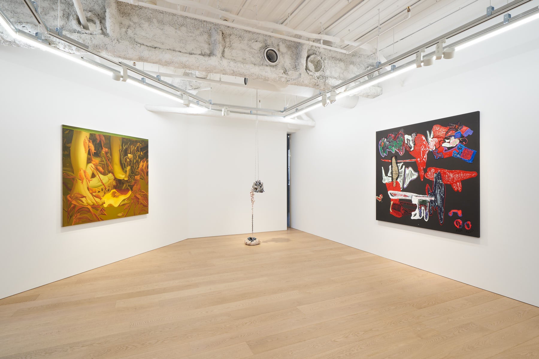 リーリー・キンメルは自身が「ミュータント・リアリズム」と呼ぶ、夢幻的でありながら少し不気味さも漂わせる抽象画を描きます。絵画のほかに立体作品や、Tilt brush(VR描画アプリ)を使用して没入的な3D作品制作にも取り組んでいます。キンメルの作品からはバスキアやジョアン・ミロに見られるデフォルメや、サイ・トゥオンブリーのようなプリミティブな描画のスタイルの影響が感じられます。彼女が描く迷いや滲みのない明瞭な描線は、デジタルペインティングこそが子どもたちにとって身近な「お絵かき」のツールとなった現代的な絵画のテクスチャーを反映していると言えるでしょう。