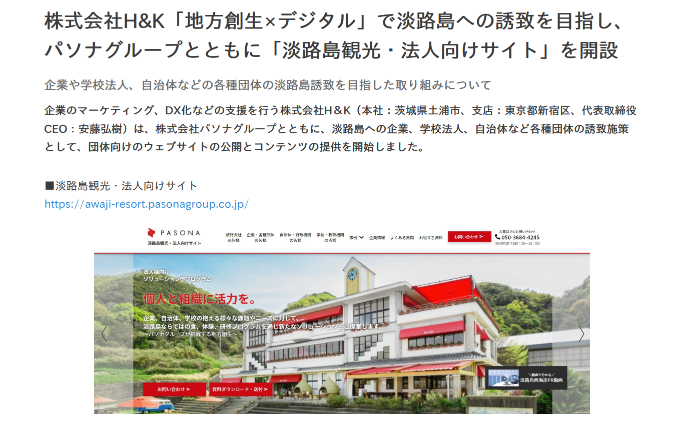 【MA・CMS導入事例】株式会社H&K「地⽅創⽣×デジタル」で淡路島への誘致を目指し、パソナグループとともに「淡路島観光・法⼈向けサイト」を開設
