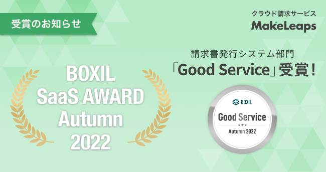クラウド型請求管理サービスMakeLeaps BOXIL SaaS AWARD 2022 請求書発行システム部門 Good Serviceに選出