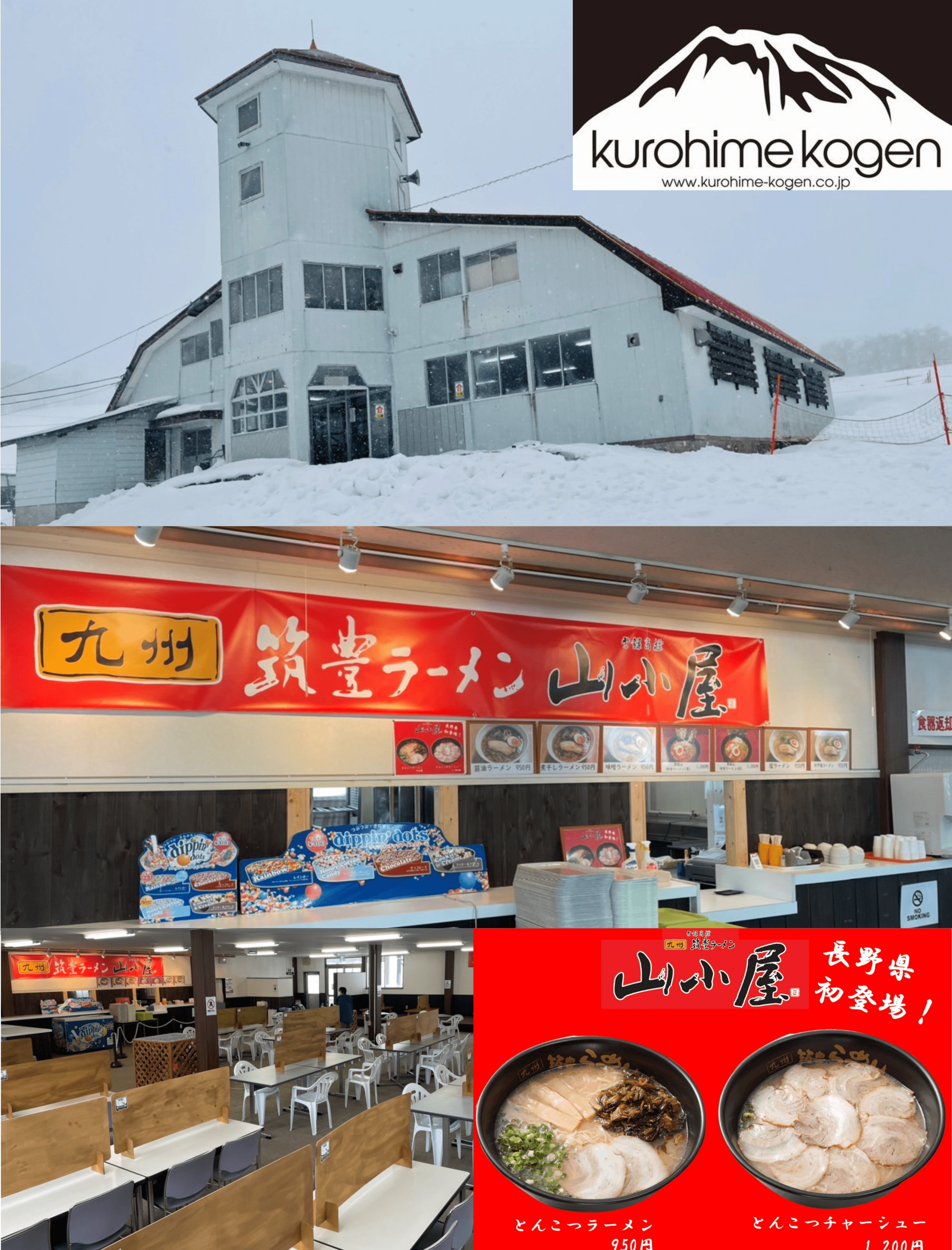 2021年12月~2022年3月まで期間限定で黒姫高原スノーパーク(長野県上水内郡)のレストラン内へ、九州筑豊ラーメン山小屋を出店。