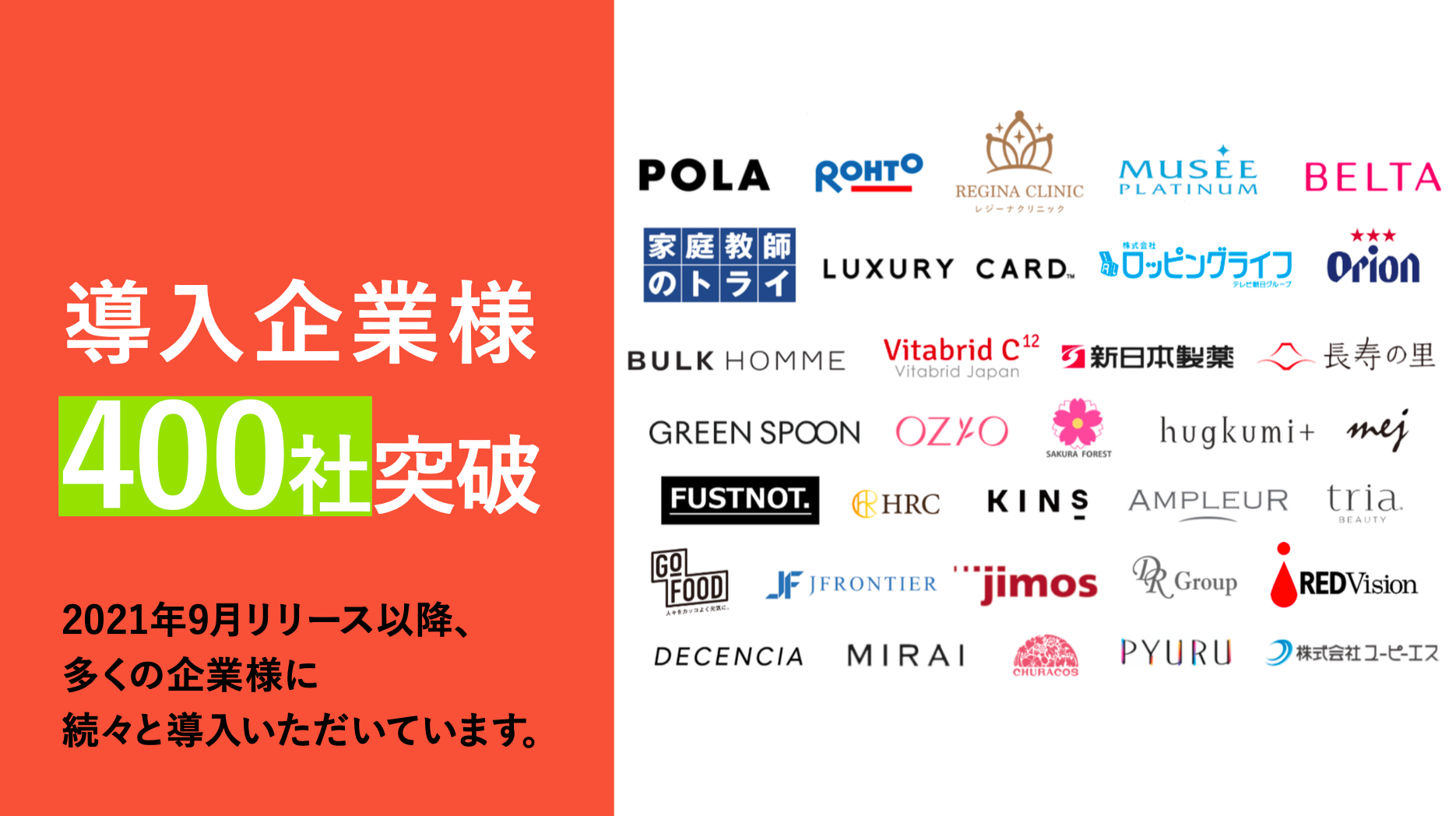 2021年9月リリース以降、累計ご利用社数は400社を突破し、多くの企業様に続々と導入いただいています。