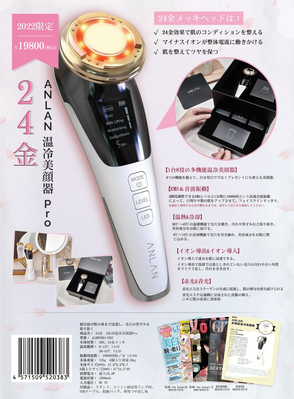 「24金 ANLAN 温冷美顔器 PRO」や1MHzの「ANLAN オーロラRF美顔器」、EMS機能が搭載した「目元専用美顔器」などを出展します。