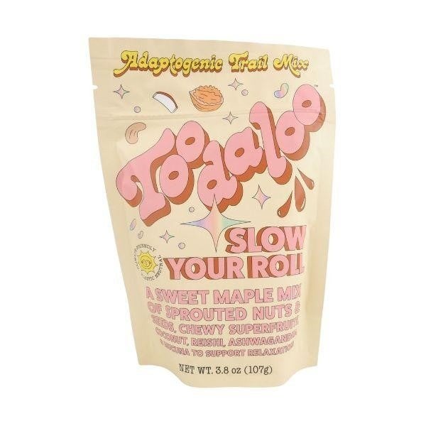 サステナブルなスーパーフード入りトレイルミックスで気分調整の効果もUP Slow Your Roll Adaptogenic Trail Mixは発芽カシューナッツ、桑の実などのスーパーフードや霊芝やアシュワガンダなどのアダプトゲンを使用。アメリカ南西部原産で最小限の水で栽培可能なメスキートの木から摂れる豆と鞘の粉末を使用するなど、健康的かつサステナブルであることに注力している。Toodalooの製品(米国、2022年)。 出典:ミンテルGNPD |