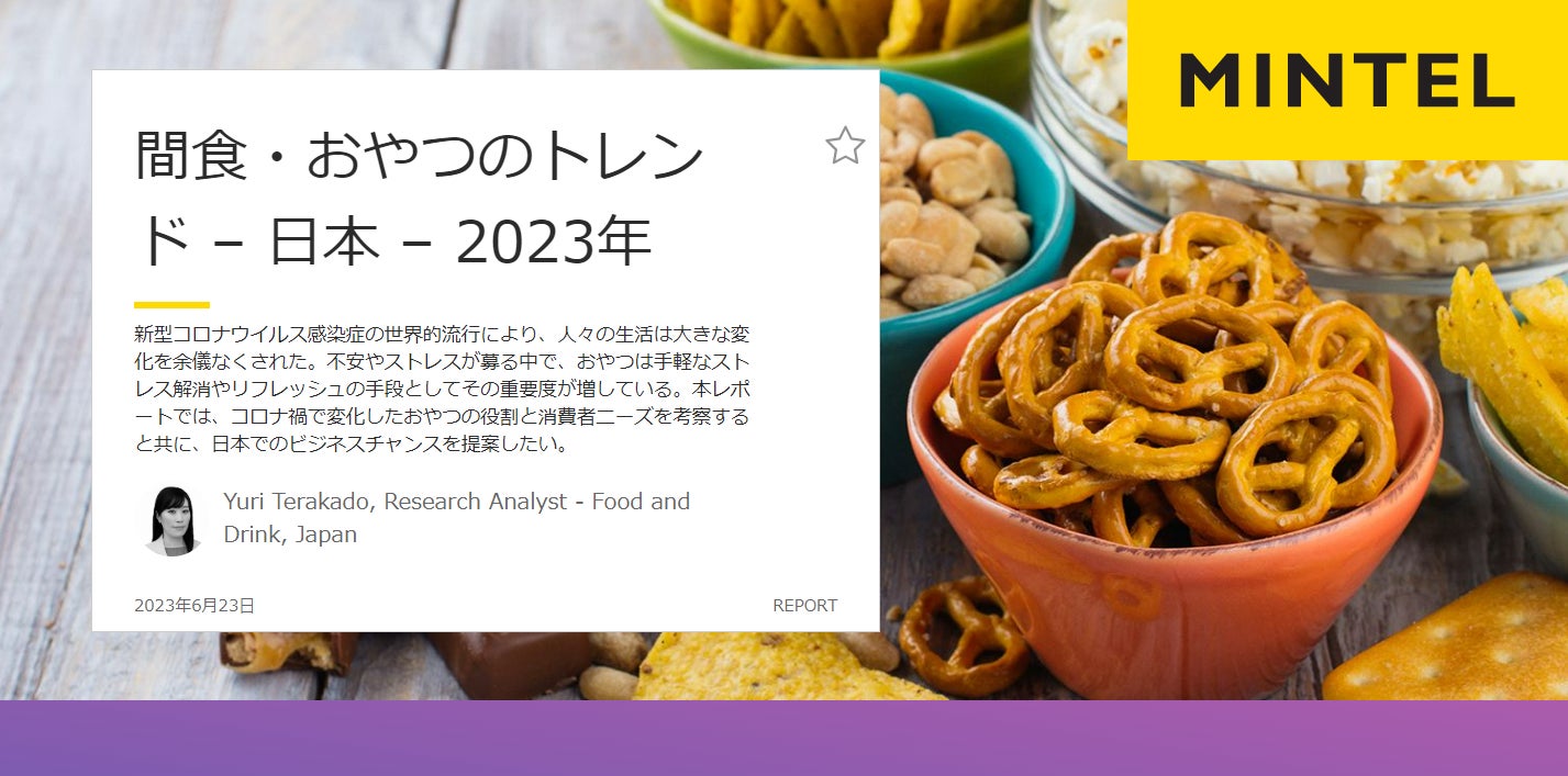 イギリス、ロンドンに本社を置く大手市場調査会社「Mintel(ミンテル)」は2023年6月23日(金)、ミンテルジャパンレポート*より「間食・おやつのトレンド – 日本 – 2023年」と題したレポートを発刊しました。本レポートでは、日本の間食・おやつ市場の概況だけでなく、海外のトレンドや同市場に影響を与える法規制などを紹介し、グローバル市場の時流を捉えながら日本での今後の商機について考察しています。
