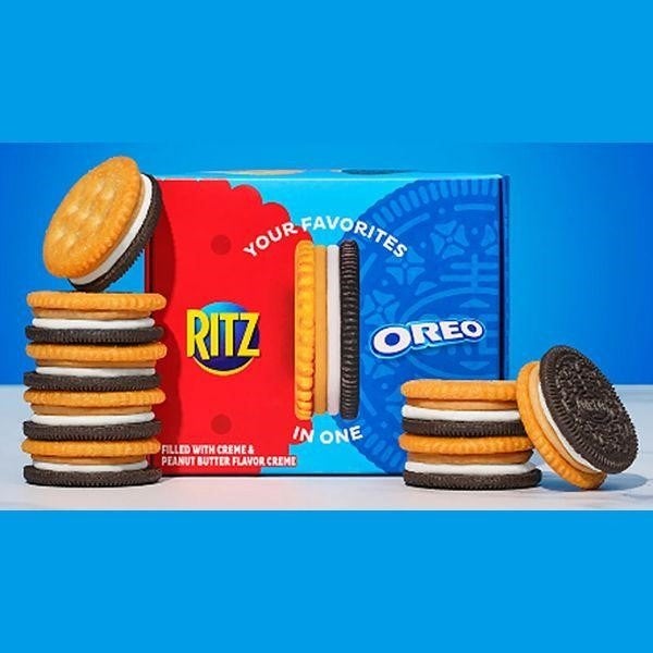 Oreo x Ritzはオンラインでの応募で希望者に無料配布されたRitzとOreoのコラボ商品。ピーナッツバターとバニラクリームの甘じょっぱさを楽しめる(米国、2022年)。 |