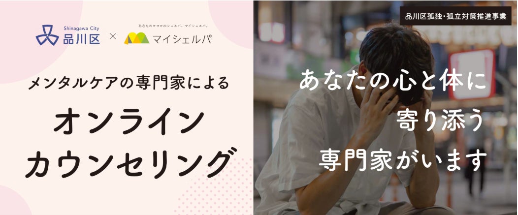 オンラインカウンセリングを提供する株式会社マイシェルパ(以下、当社)は、東京都品川区(以下、品川区)に、法人向けメンタルヘルスケア支援サービス「マイシェルパ」を提供しました。品川区民は無料で、臨床心理士や公認心理師によるオンラインカウンセリングを受けられます。品川区では孤独・孤立対策として、悩みが深刻になる前に、一人で抱え込まずに早めにカウンセリングが受けられるよう本サービスを導入しました。