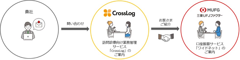 訪問診療向け業務DXのクロスログが口座振替サービスを展開する三菱UFJファクターと業務提携