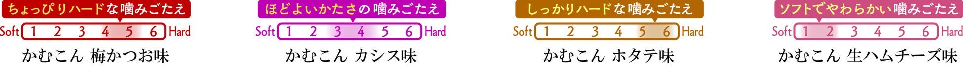 昼:気分がリフレッシュできるカシス味・梅かつお味にはそれぞれに合わせた噛みごたえを付与