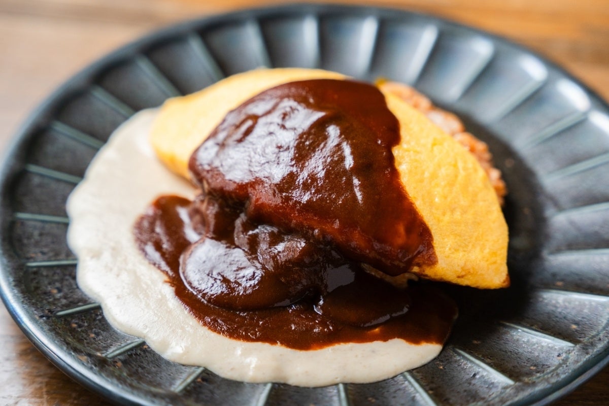 卵と自家製ドミグラス、ホワイトマッシュルーム