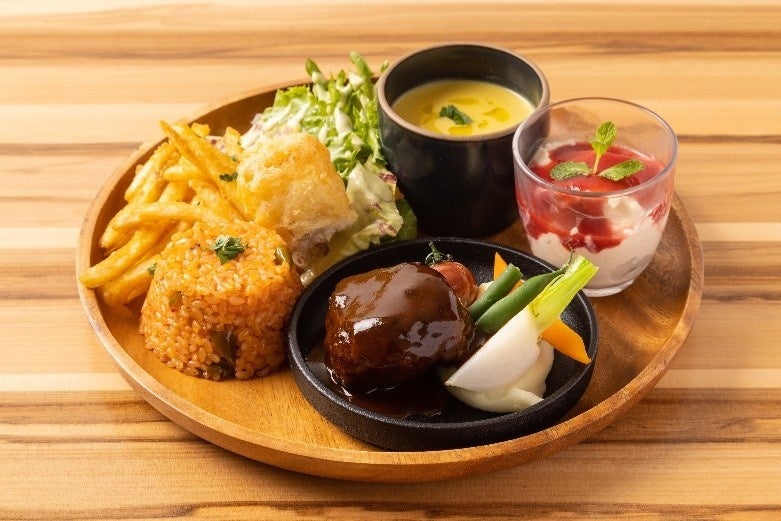 ハンバーグやポテト、デザートなど、お子様が大好きなメニューを全て盛り合わせた、大満足の特製のプレート