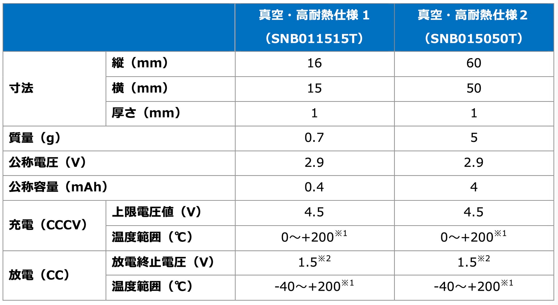 今回の特性はこれに加え、耐熱仕様電池の真空環境動作に応えるものです。これにより、真空、高温かつクリーンな環境に電池が使用できるようになり、装置の無線化等に大きく貢献できます。