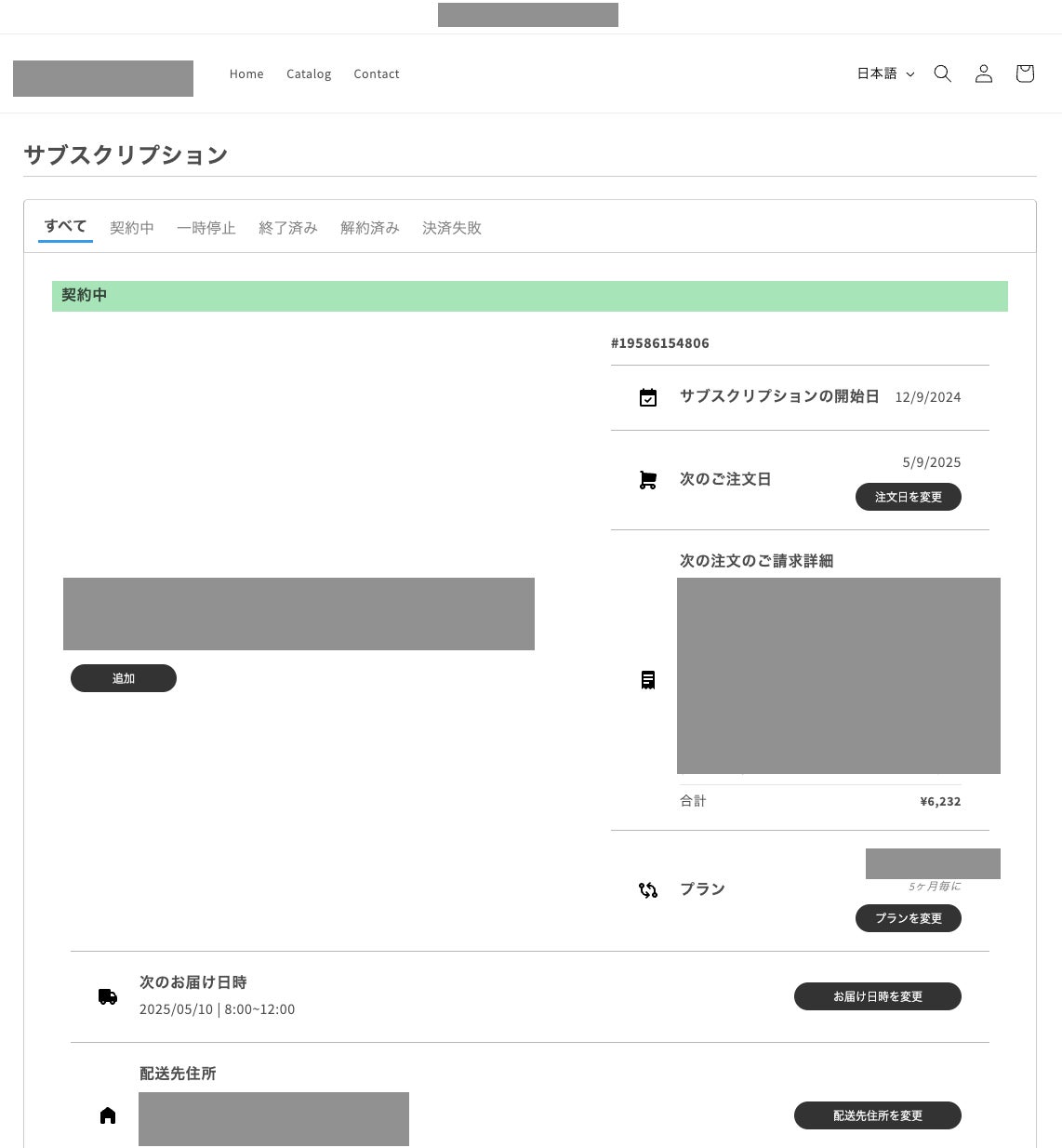 ボタンを押すと、Go Subが用意しているサブスクリプション管理ページへリダイレクトして、サブスクリプション管理ページに今までのサブスクリプションセクションと同じようにお客様の契約情報が表示されます