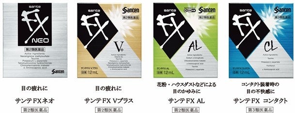 「サンテFX シリーズ」では、2021年3月24日(水)より、花粉・ハウスダウトなどによる目のかゆみに効果を発揮する一般用点眼薬「サンテFX AL」と、コンタクト装着時の目の不快感に効果を発揮する「サンテFX コンタクト」の2製品を発売し、4つのラインアップとなりました。これからも、より多くの若者たちのニーズに応えるブランドを目指していきます。