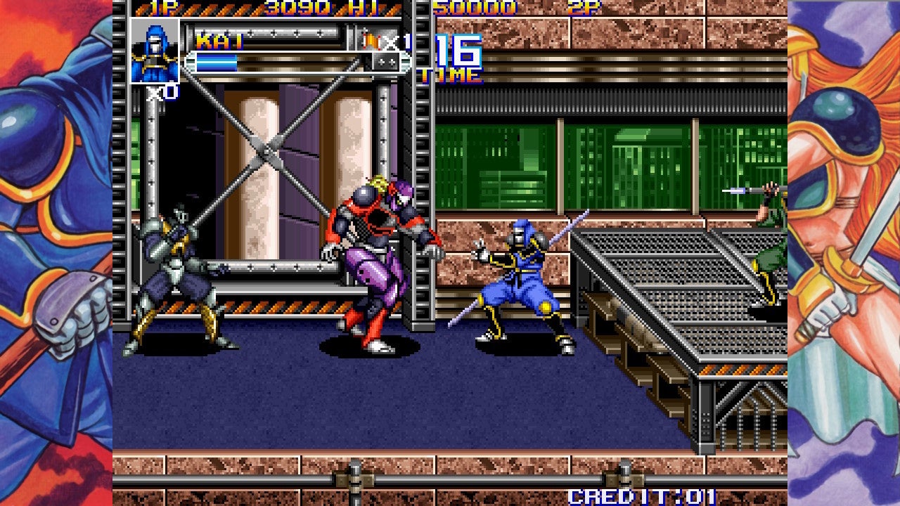 「サイボーグ忍者が悪の組織に立ち向かう、ベルトスクロールアクション」