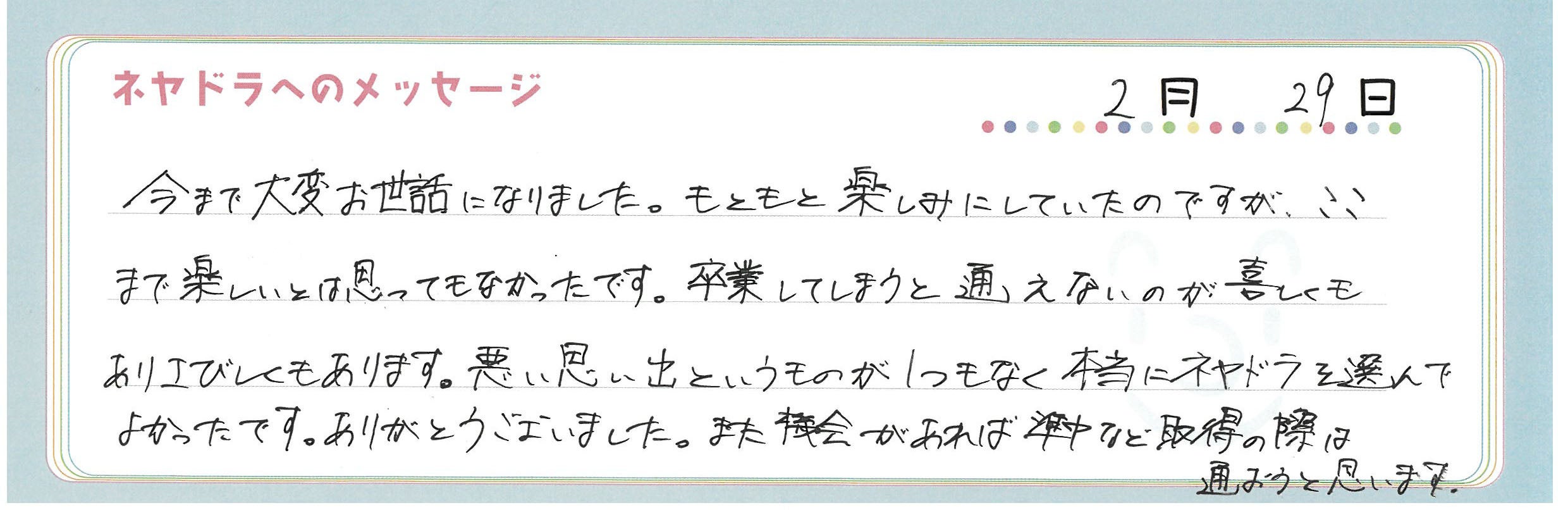 さらに、アンケートのメッセージ欄には「卒業が寂しい」という声が。