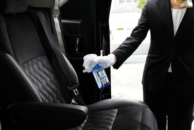 アウテックのハイヤーは、全車前予約にてご利用いただきますので、ゲストがご乗車になる前にしっかり新型コロナウイルス感染症対策を徹底しておこなっております。