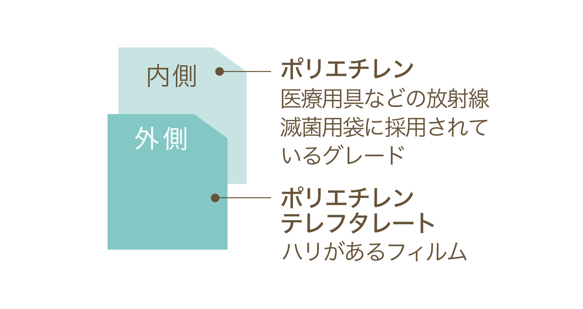 ・本体フィルム:ポリエチレンテレフタレート、ポリエチレン ・シール:紙 |