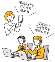お申し込み電話時にオペレータが電話口でご指定の振込先情報をお聞きするだけ。煩わしさがなく、キャッシュバックの「もらい忘れ」や「手続き忘れ」がありません。