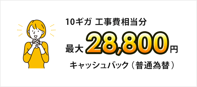 ※「SoftBank 光 工事費サポートはじめて割」キャンペーン適用の場合、当社独自キャッシュバック”1ギガ特典/10ギガ特典”共に7,000円減額となります。