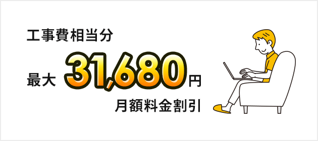 キャンペーン期間中に他社からの乗り換えでソフトバンク光を新規契約し、適用条件を満たしたお客さまへ、工事費相当分を月額基本料金より割引いたします。