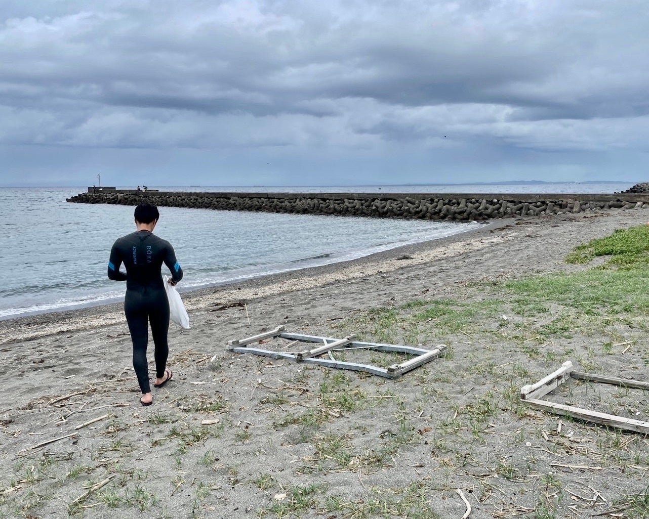 インターグ代表那須とメンバー数名でビーチクリーンをした際の様子。