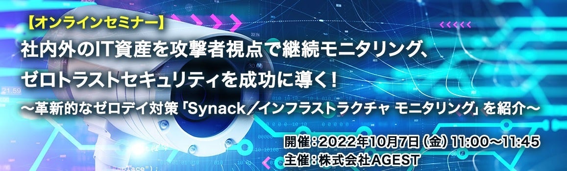 AGEST、10月7日(金)にオンラインセミナー「ゼロデイ対策を実現するインフラストラクチャ モニタリングソリューションとは?」を開催
