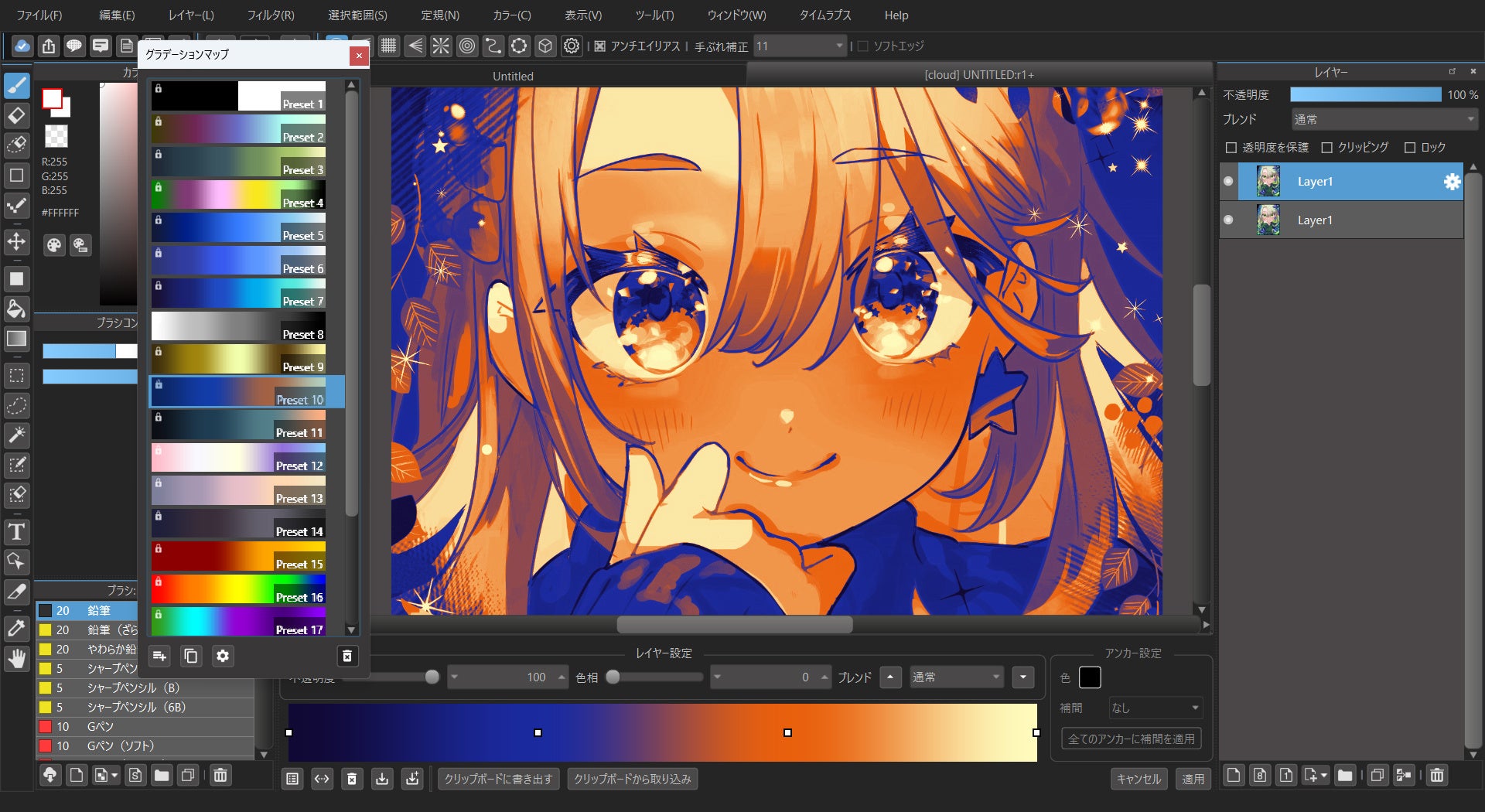 20種類を超えるプリセットから色合いを選択することで、作品全体の雰囲気を自由に変更できます。