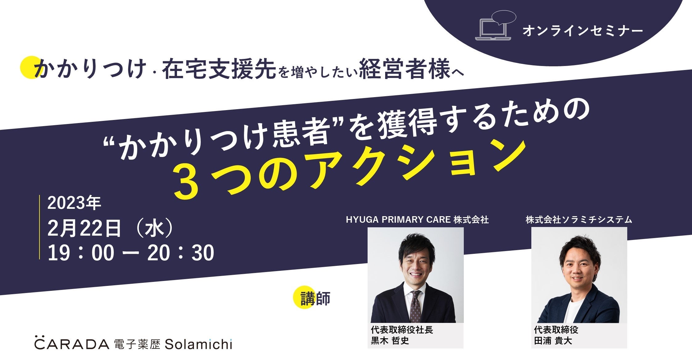 【ソラミチシステム:無料オンラインセミナー2月22日開催】在宅訪問先を増やしたい薬局経営者必見!「“かかりつけ患者”を獲得するための3つのアクション」