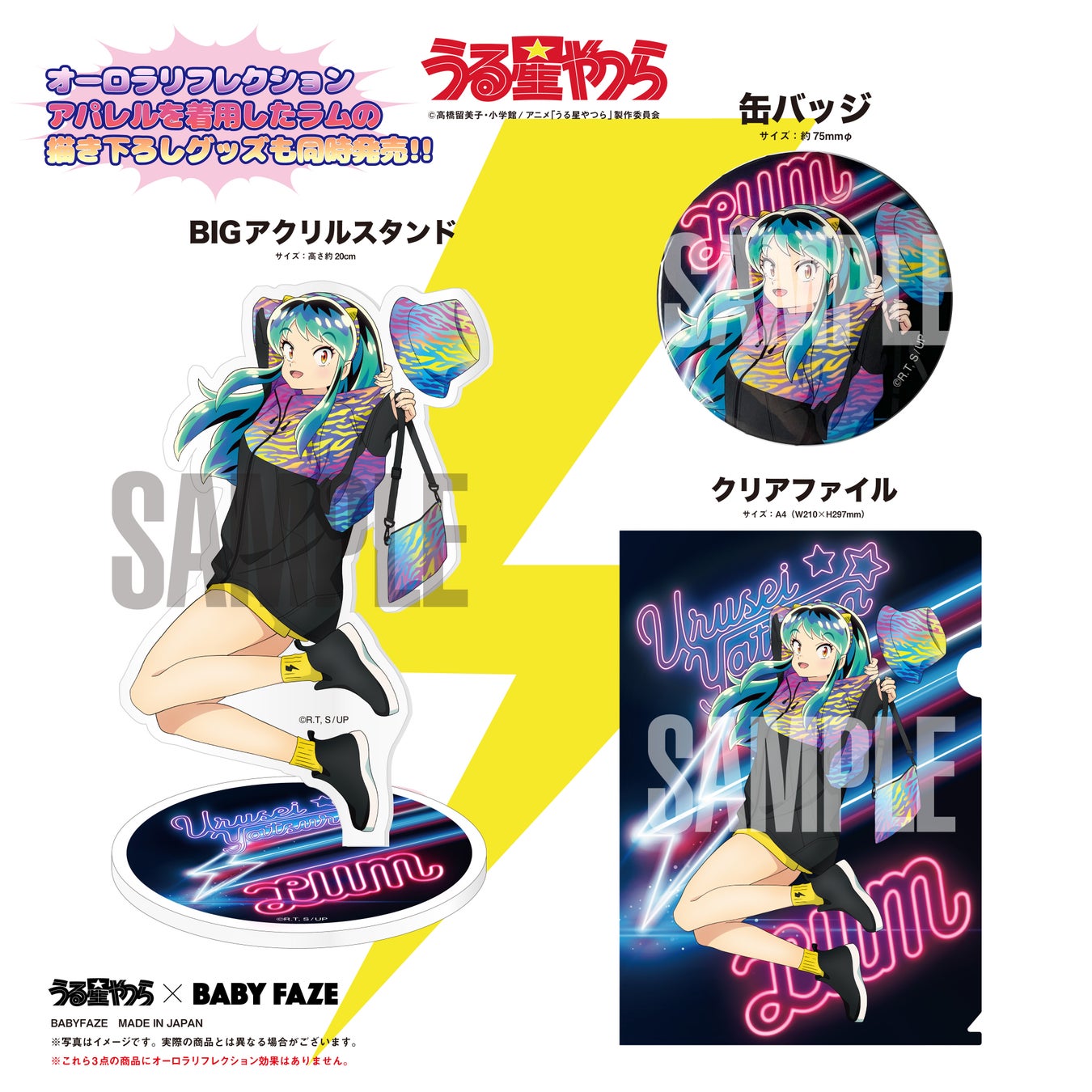 そしてこれらのオーロラリフレクションアパレルを着用したラムの描き下ろしグッズとしてBIGアクリルスタンド、缶バッジ、クリアファイルが同時発売!!