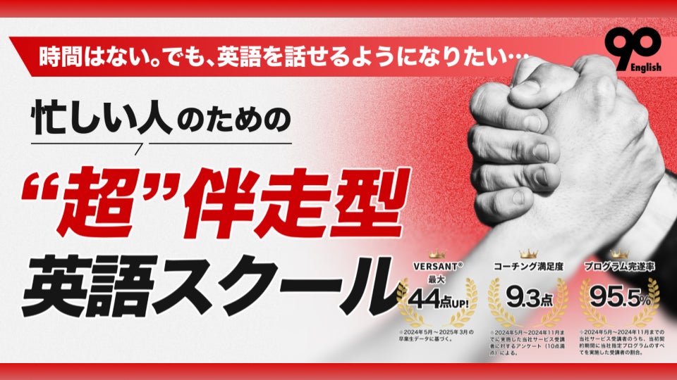 90株式会社(以下、当社)は、『「やってみたい!」をあたりまえに。』をビジョンに掲げ、“超”伴走型の英語コーチングスクール『90 English』を提供。