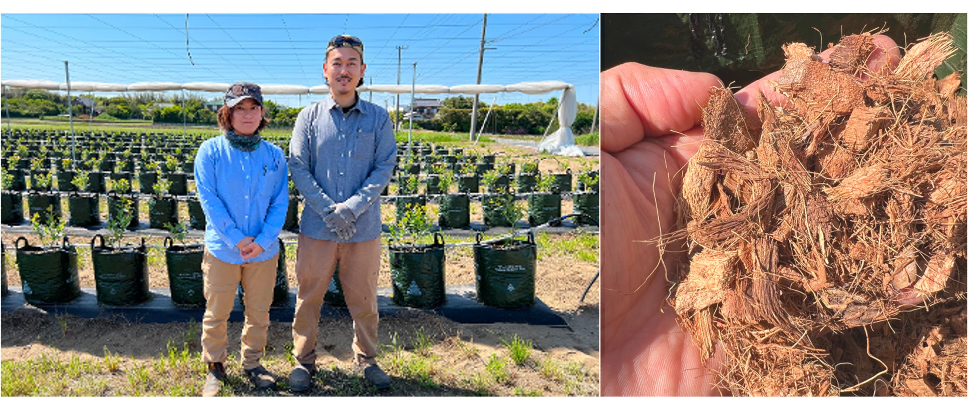 ブルーベリー農園「bluemate farm」様は、オーストラリアでの経験をもとに千葉県山武市にて新規就農されました。2024年より「ブルーベリー用ココチップ」を導入し、地植えではなく、ポットによる隔離栽培でブルーベリーを栽培されています。今回の導入事例記事では、「bluemate farm」農場長の喜納寛子様、矢作卓也様に、ブルーベリーのポット栽培を選んだ理由や、「ブルーベリー用ココチップ」の使用感についてのインタビューを実施いたしました。