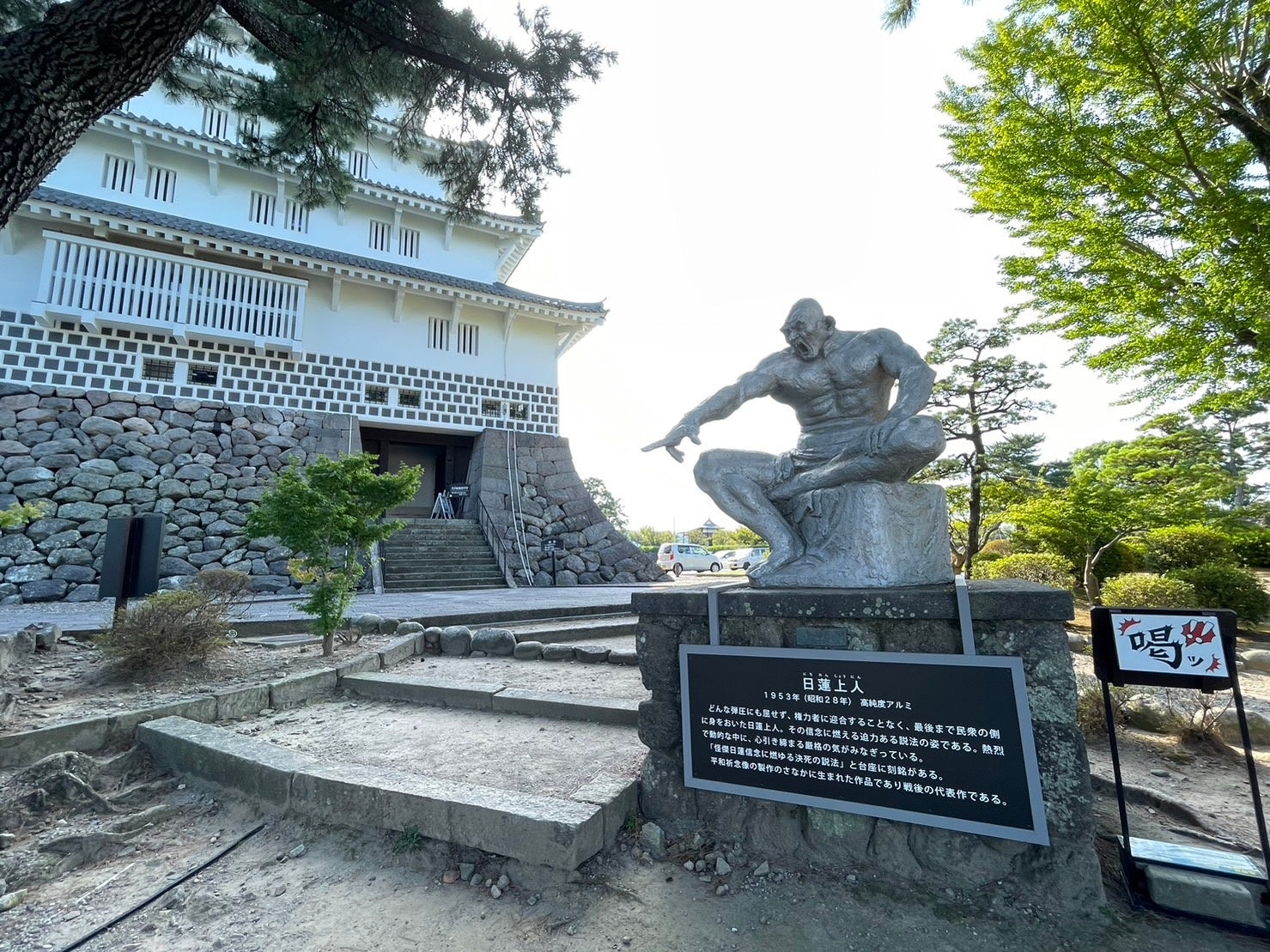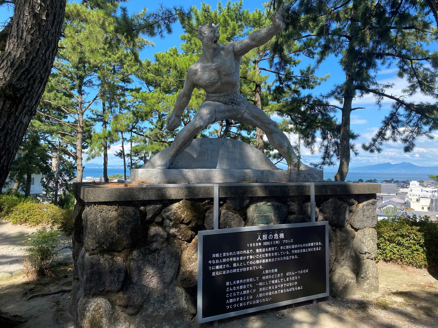 島原城にある北村西望の野外作品に説明板を設置しました。