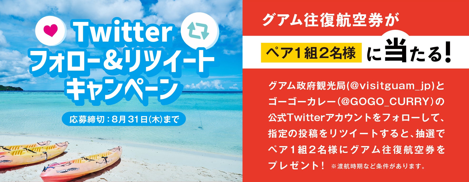 4) グアム往復航空券がペア1組2名に抽選で当たる「ゴーゴーカレーを食べてゴーゴーグアム Twitter キャンペーン!!!」(https://www.visitguam.jp/events/gogoguamcurry_cp/)