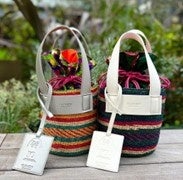 ガーナから伝わる洗練されたハンドメイドバスケット。ガーナ伝統のきめ細やかで上質な網目からなる軽くて多機能なバスケットは2週間もの時間をかけ、ひとつひとつ心を込めて生産しています。今年はハンドルにカラフルなフェイクレザーを使用しました。