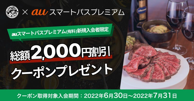 「auスマートパスプレミアム」に新規入会された方を対象に、「原価ビストロBAN!」で使用できる合計2,000円分クーポンをプレゼントします。