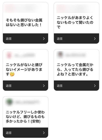 錆びると思うと回答した人のコメントを見ると、ニッケルに良くないイメージを持っている方が多いようでした…!