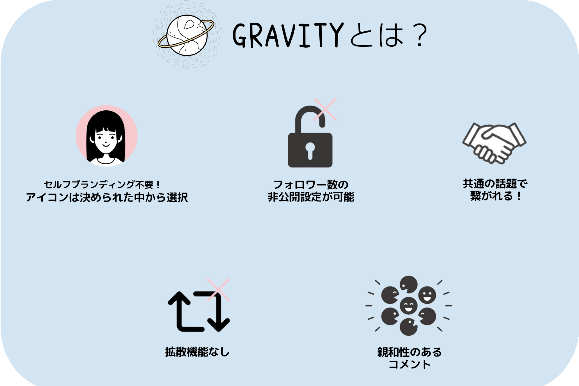 性格診断に基づき、相性の良いユーザーと繋がることができるため、コメント欄が荒れることはなく、応援メッセージや前向きなコメントが多い点がGRAVITYの特徴の1つです。