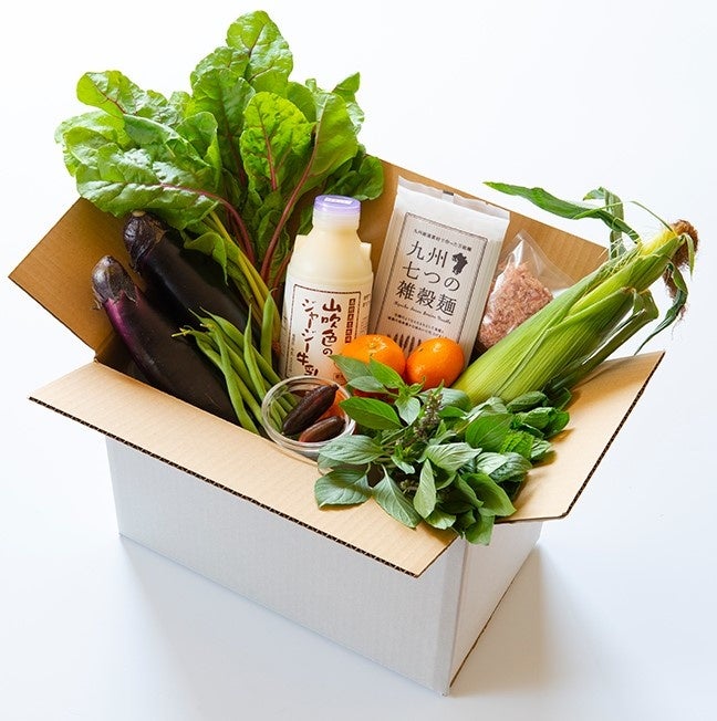 熊本県阿蘇郡小国町の酪農家がつくる、土づくり・牧草づくりからこだわったジャージー牛乳をはじめ、九州の生産者の方々がてまひまかけて育てた野菜や加工品を1箱に詰め込みました。