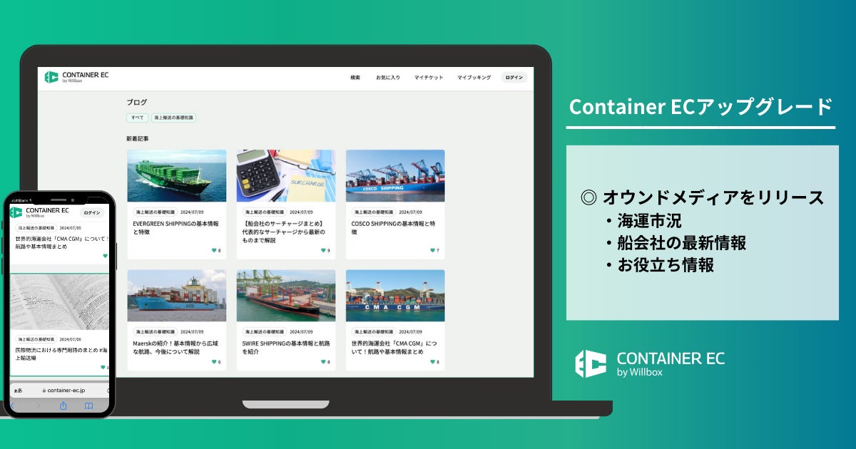 国際物流プラットフォームを開発・運営するWillbox株式会社(本社:神奈川県横浜市、代表:神一誠、以下:Willbox)は、海上コンテナ手配専用サービス「Container EC」のオウンドメディアの提供を開始したことをお知らせいたします。