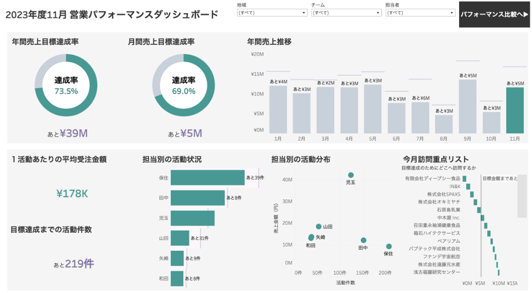 売上目標達成のために、誰が何処に行けば良いのか・マネージャーが指摘すべきポイントは何処なのかをデ