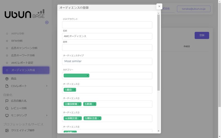 「Ubun BASE」のAMCレポート機能は以下の分析を提供し、企業のデータドリブンなアプローチを支援します。