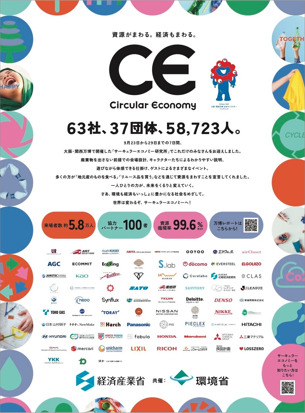Synflux株式会社(シンフラックス 、以下Synflux|代表:川崎和也)は、大阪・関西万博で開催した「サーキュラーエコノミー研究所」を契機とした、経済産業省(後援:環境省)のサーキュラーエコノミー広告に賛同し、社名を掲載いたしました。Synfluxは、大阪・関西万博において、複数の催事や企業パビリオンのユニフォーム企画に参画いたしました。