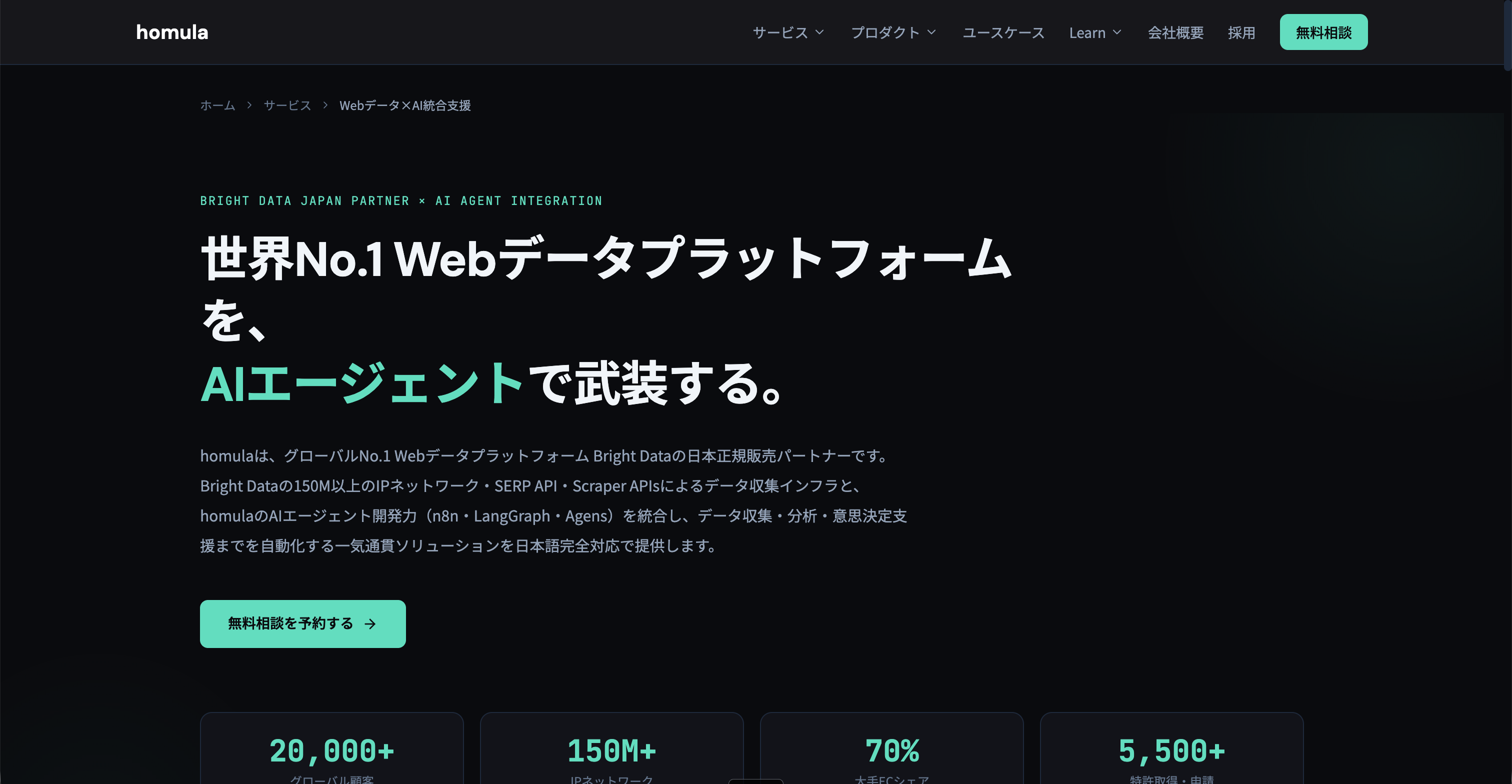 ブライトデータとの「Webデータ×AIエージェント」サービスページ: https://www.homula.jp/services/bright-data