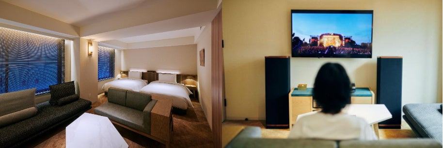 ご滞在いただくお部屋には高性能スピーカーが備えられておりBluetooth好きな音楽を聞きながら優雅に過ごすこともできさらに、テレビには動画配信サービスを内蔵しており、アカウントをお持ちの方は、NetflixやHulu、アマゾンプライムYouTubeをお楽しみいただけます。