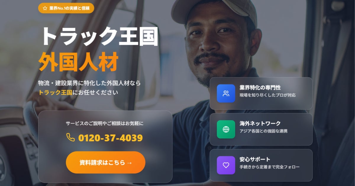商用車専門オンラインプラットフォーム「トラック王国」を運営する株式会社トラックオーコク(本社:東京都渋谷区、代表:津島 一夫)は、2025年11月18日(火)より、外国人トラックドライバーの紹介および登録支援事業を開始します。2024年3月の制度改正により「特定技能」の対象分野に自動車運送業が新設されたことで、外国人ドライバーの採用が正式に認められました。